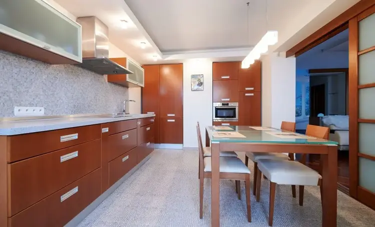 - Полностью укомплектованная кухня — мечта для семейных вечеров и теплых ужинов