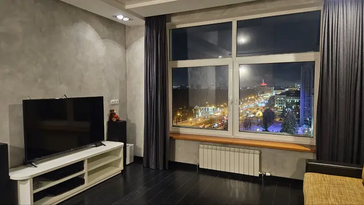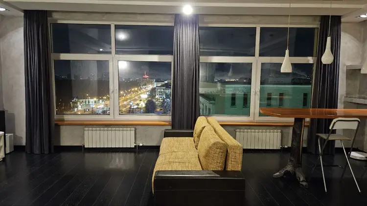 Современный ремонт – натуральный паркет, высокие потолки, панорамные окна.