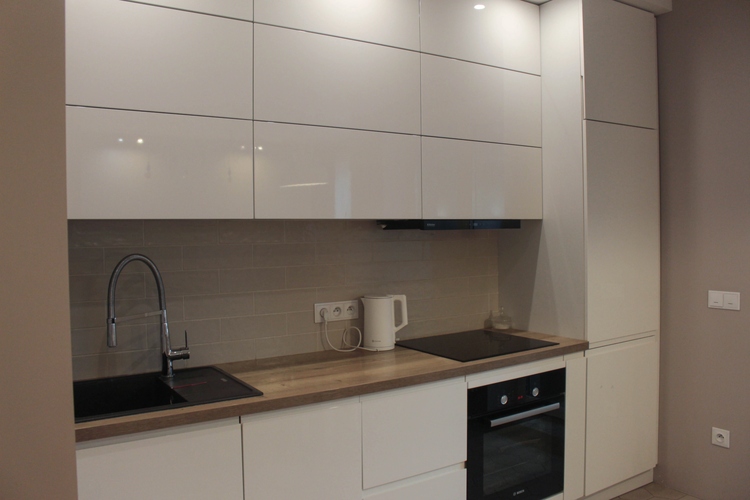 Кухня оборудована большим количеством систем хранения и удобной рабочей поверхностью.