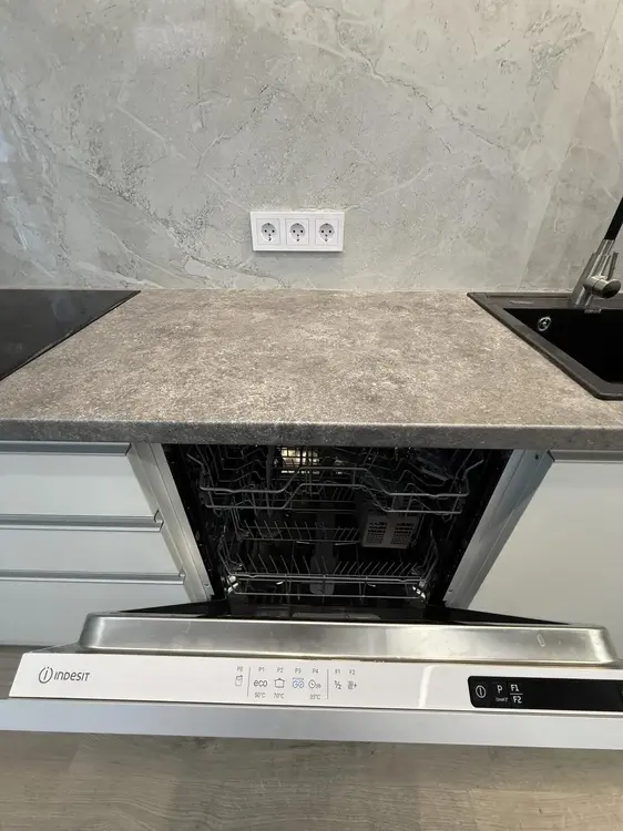 Оставляем технику: духовой шкаф, варочная панель, посудомоечная машина, холодильник. Кровати нет, спальное место оставили на индивидуальный выбор новым жильцам.