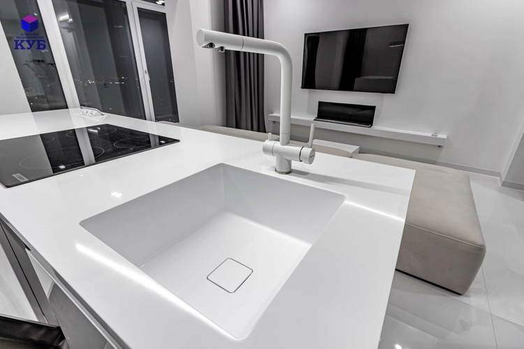 * Большая светлая гостиная, интегрированная с современной кухней-столовой (кухня-гостиная). Идеальное пространство для отдыха, приема гостей и семейных ужинов.