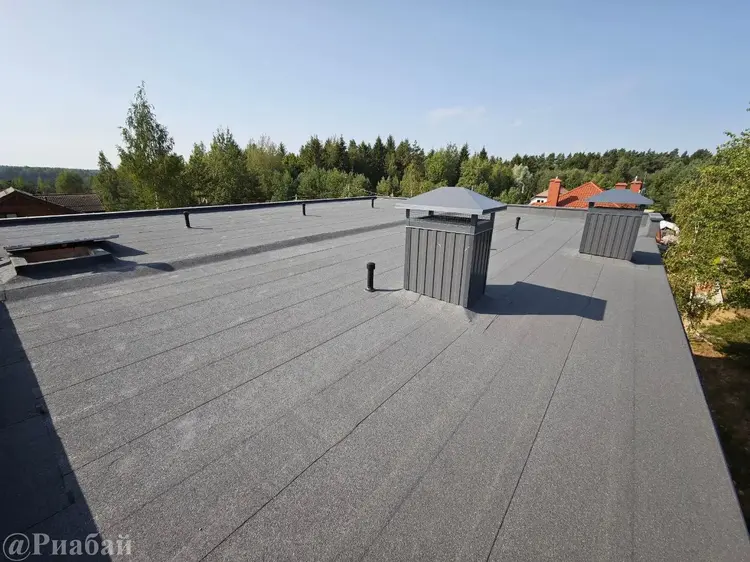 Главный дом 218 м2: Современная архитектура, плоская кровля, панорамные окна от бренда Salamander (76 мм). Высота потолков — почти 3 метра, что создает ощущение простора и свободы.