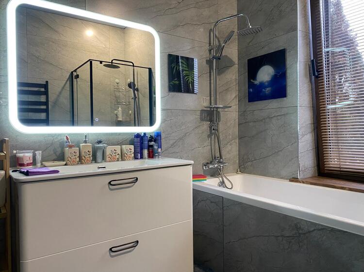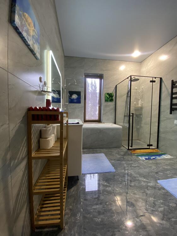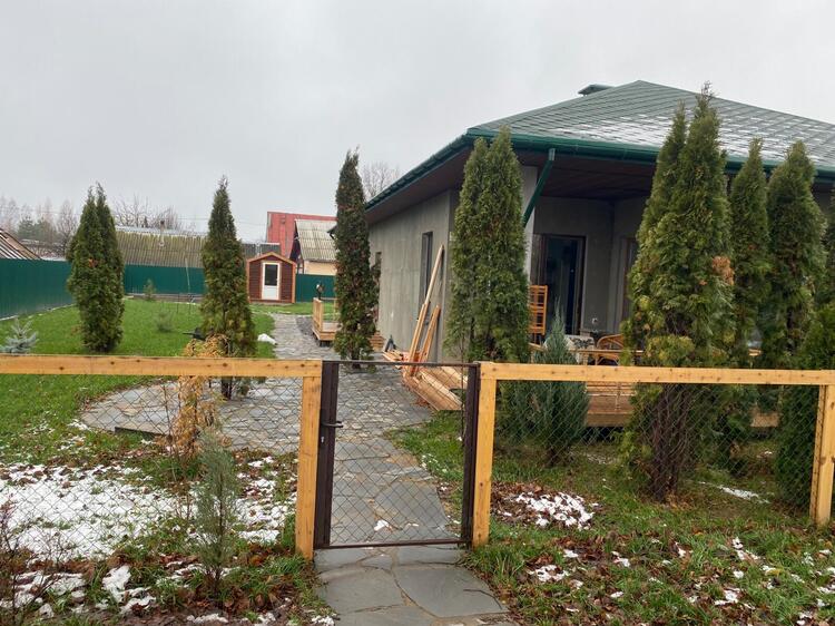 Продается жилой дом в районе Ямницкого поселка 2024 года постройки общей площадью 120,0 м кв, одноэтажный. Дом блочный, утеплен и оштукатурен, (осталось только покрасить в ваш любимый цвет), крыша вальмовая, покрытие мягкая кровля, плиты перекрытия железобетонные, высота потолков в доме 2,75м, потолки натяжные и сделан парящий потолок(световые линии по периметру), потолочные карнизы алюминиевые, во всем доме окна в пол, ламинированные под сосну, дополнительно установлены на двери шторы-плиссе, на все открывающиеся окна есть москитные сетки. Полы во всем доме с подогревом, регулируются, в гостиной и кухне немецкий паркет-елка, в спальне паркетная доска. Кухня натуральное дерево, шкафчики с подсветкой изнутри, идукционная варочная поверхность фирмы Электролюкс, духовой шкаф, вытяжка, вся мебель в доме производства "Молодечномебель" и "Пинскдрев".В гостиной установлен кондиционер, в большой спальне сделан выход для установки кондиционера. Все коммуникации в доме, канализация центральная. Участок 7,4 сотки, ровный, квадратный, посажены туи. Есть баня-бочка, залит фундамент под сарай. При строительстве и отделке дома применялись только качественные дорогостоящие материалы, строили для себя, продают в связи с переездом.