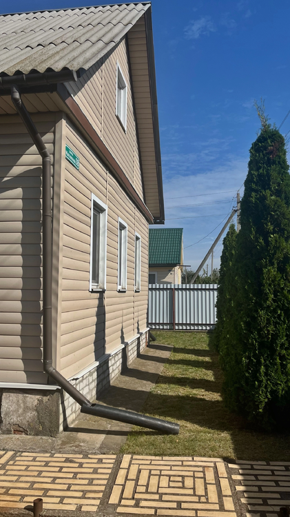 Участок выровнен, вокруг дома имеется отмостка и ливневая система.
