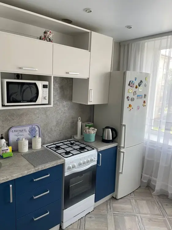 Кухня аккуратная и компактная. Есть вся необходимая кухонная утварь, чай, кофе.