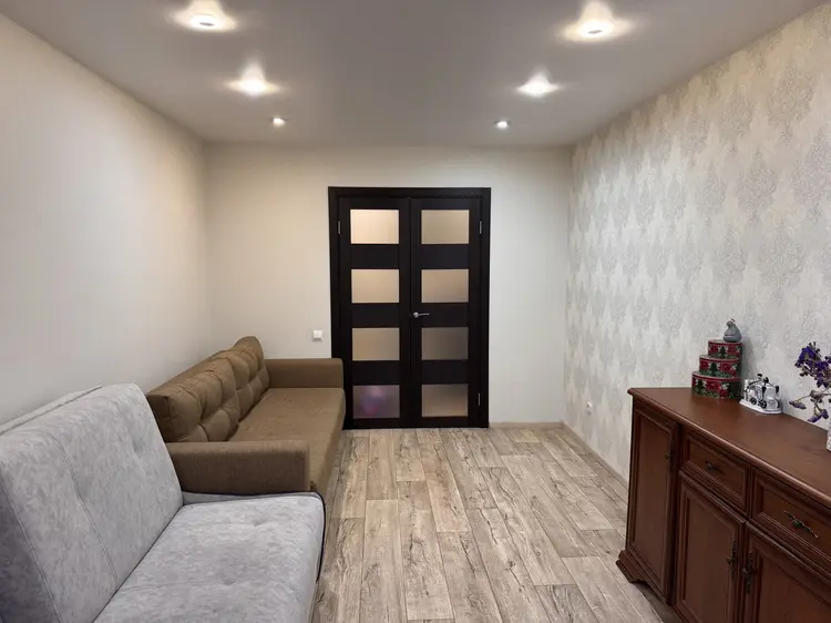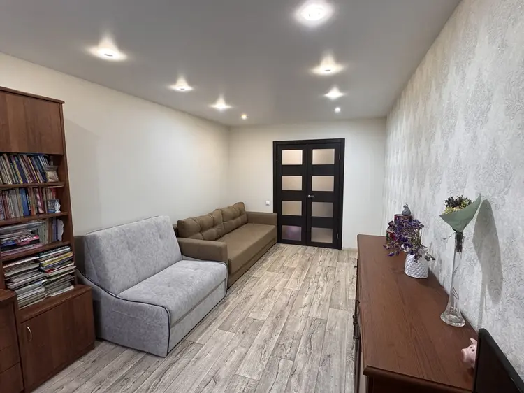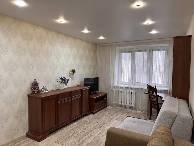 Планировка: Очень удобная. Просторная комната и большая кухня, раздельный санузел. В прихожей есть ниша, где установлен шкаф. Удобная лоджия.