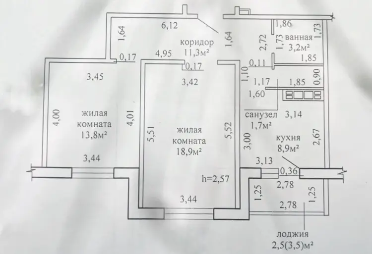 Квартира теплая, сухая, расположена на 1-ом этаже 5-этажного кирпичного дома общей площадью 35,9 кв.м., жилая 15,4 кв.м., кухня 8,9 кв.м., ванная комната - 2,5 кв.м., санузел - 1,3 кв.м. В прихожей (6,8 кв.м) расположен удобный встроенный шкаф (1кв.м).