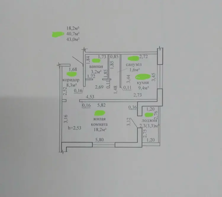 Высота потолков - 2,50 м. (см.фото тех. паспорта).