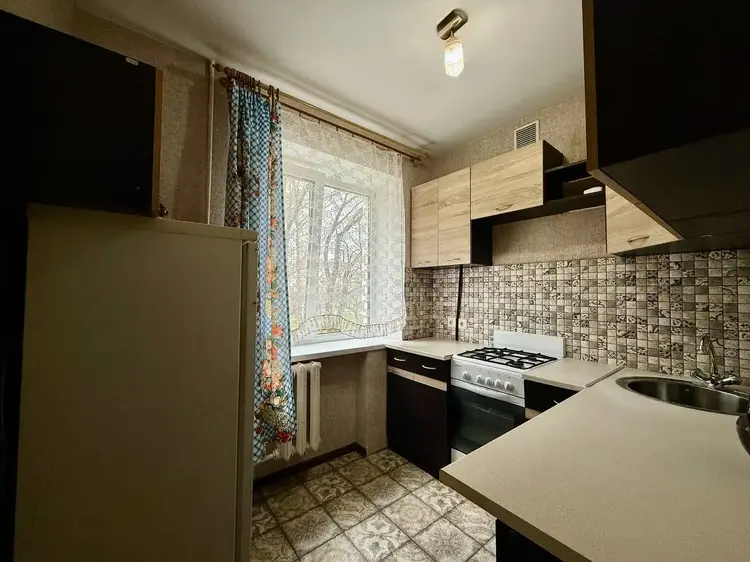 Полы: плитка (кухня, коридор, санузел), ламинат (жилая комната)