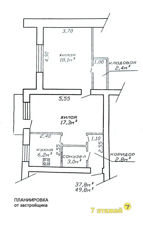 Квартира имеет ряд отличных преимуществ: расположена на 3 из 5 этаже, улучшенный проект дома; удачное расположение и новая практичная планировка квартиры; большая кухня/гостиная с выходом на лоджию; изолированная комната; окна выходят на тихую сторону дома с видом на детскую площадку. Площадь квартиры указана по СНБ - 52,2кв.м. Общая площадь квартиры 49,8кв.м. Площадь жилая 35,4кв.м., кухня 6,2кв.м.