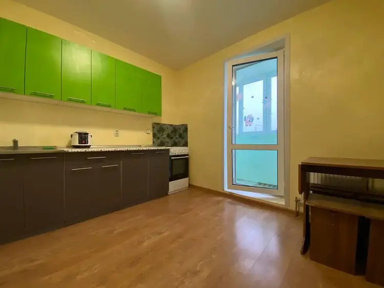 Большая глубокая лоджия с выходом из кухни, застеклена рамой ПВХ, выведен свет на лоджию. Квартира без евроремонта, но в жилом состоянии. Можно заехать жить и делать ремонт под свой вкус и цвет.