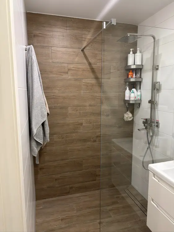 7. Совмещенный современный санузел с душевой зоной (трап), дорогое стекло, качественная инсталляция;