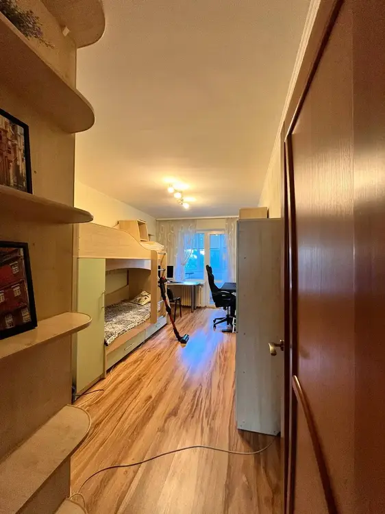 В квартире остаётся вся мебель, для комфортного проживания - встроенная кухня (выполнена по индивидуальному проекту), два встроенных шкафа, набор мебели в спальне. Обустроенная детская комната, с двууровневой детской кроваткой и новыми,в упаковке, матрасами.