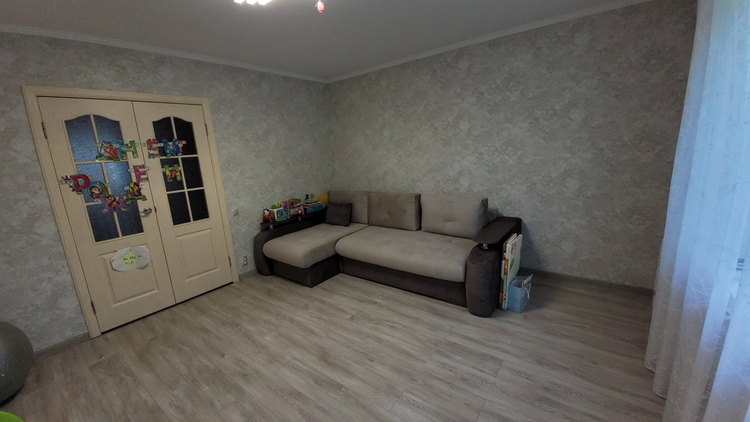 Демонтированы старые полы, выполнена стяжка, все полы в один уровень, без порогов. На полу уложена плитка, в ванной, туалете, прихожей, кухне. В комнатах ламинат.
