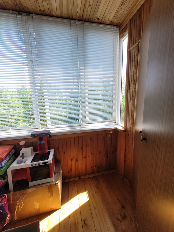 В квартире имеется две лоджии, лоджии квадратные и просторные, больше стандартных, утеплены, обустроены, остеклены алюминиевой рамой, одна лоджия оштукатурена, другая обшита деревянной рейкой.