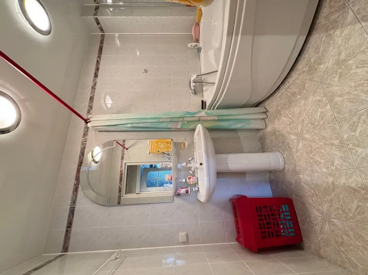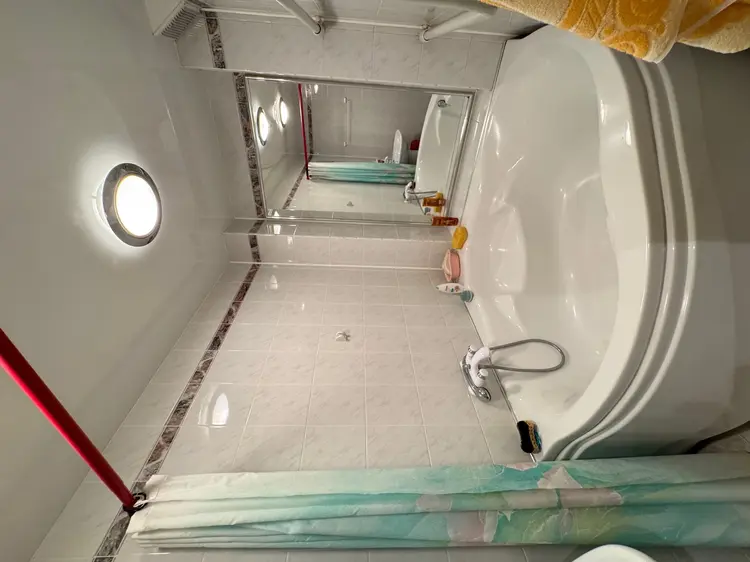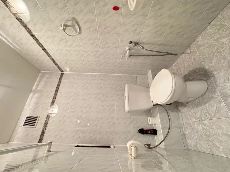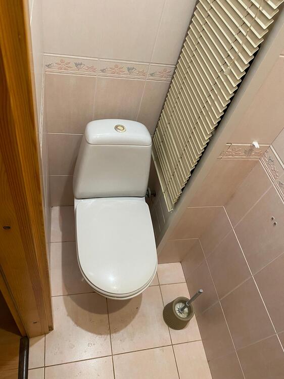 Санузел раздельный облицован керамической плиткой. В туалете установлен гигиенический душ.