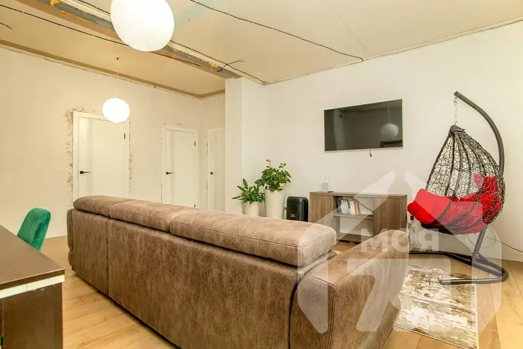 - Гостиная площадью 30 кв.м с витражными окнами и выходом на террасу (не достроена) идеально подходит для отдыха. Здесь установлены новые межкомнатные и входные двери, а также есть шкаф-купе с выходом в гардеробную.