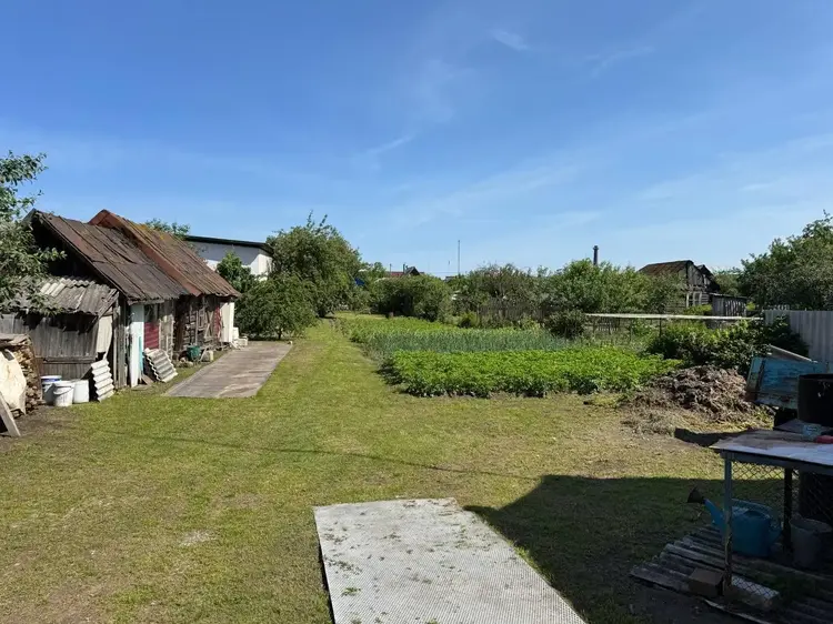 -Участок правильной формы, ухоженный, с зоной для грядок и отдыха.