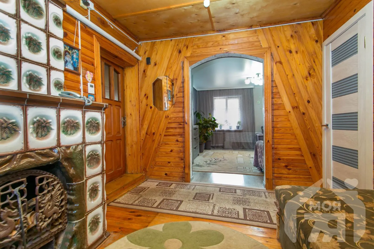Уютный двухуровневый бревенчатый дом 110 м² с кирпичной облицовкой, газовым отоплением, баней и гаражом на участке 9 соток — готов к комфортной жизни на Лесной улице в Молодечно.