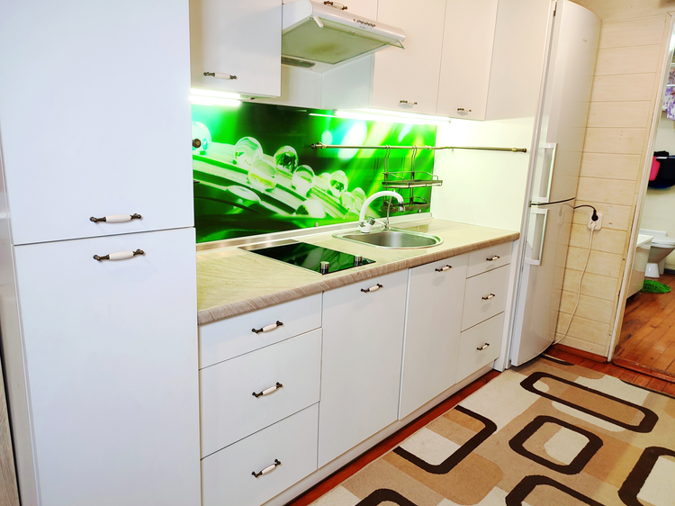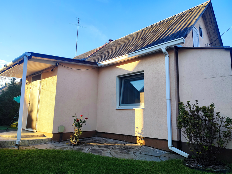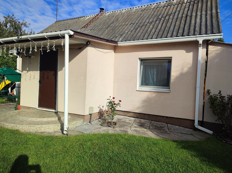 - ВТОРОЙ ЖИЛОЙ.Уютный одноуровневый дом площадью 40 кв.м. полностью готов к проживанию. Заезжай и живи сразу и одновременно строй большой дом, или зарабатывай деньги работая в гаражах. В доме кухня-гостинная, спальня и санузел. Отопление электрическое,как резерв есть печное, горячая вода от газовой колонки всегда есть, центральная канализация. Построен капитально из газобетона 35 см. толщиной, снаружи утеплен 10-ю см. пенополистирола, оштукатурен, окна все стеклопакеты, зимой прекрасно держит температуруградуса, не промерзает.