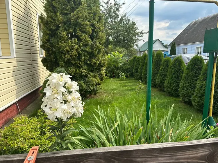 Участок 6 соток ухожен: плодовые деревья, кустарники, место для огорода, сараи, баня и просторный гараж.