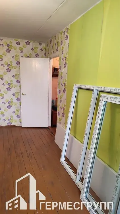 Окна деревянные. Новые окна ПВХ остаются в подарок. Дверь входная металлическая, новая. Межкомнатные двери и полы деревянные.