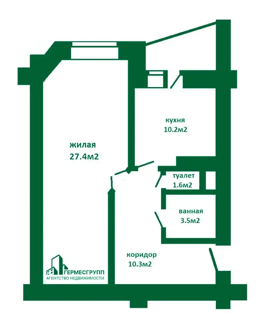 Площадь 27,4 м2 и планировка комнаты позволяет сделать две изолированные комнаты с площадью 12 м2 и 15 м2. с отдельными входами. Квартира оборудована счётчиками на воду и газ, счётчик на электроэнергию находится в общем коридоре.
