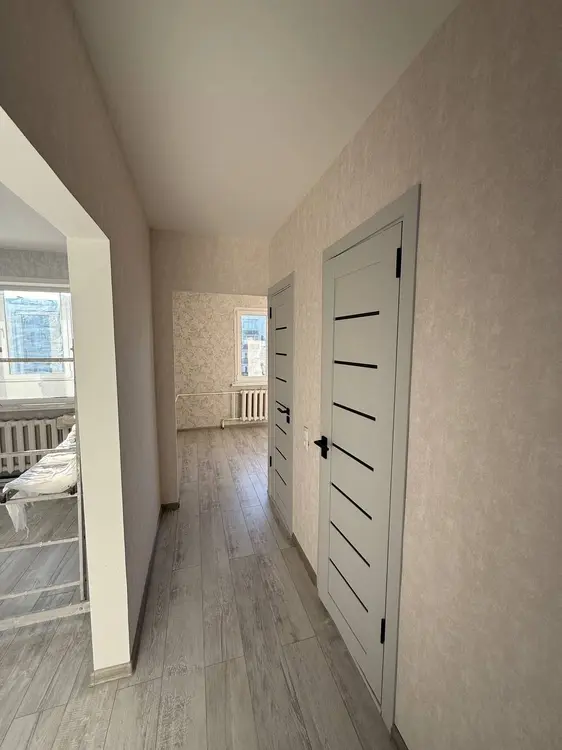 Внутри выполнен современный качественный ремонт — заменены полы, уложен ламинат, установлены стеклопакеты, новые межкомнатные двери, сантехника и трубы. Потолки отделаны, стены оклеены обоями. Входная дверь металлическая. В квартире все новое, никто не жил.