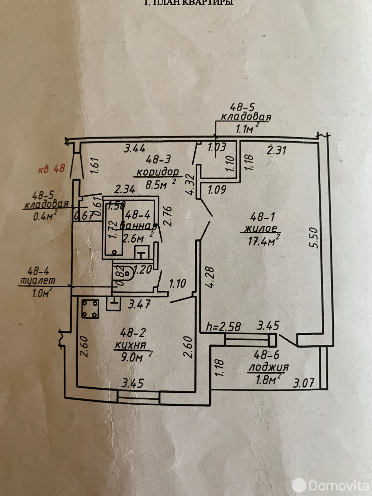 Общая площадь 41,8 м², жилая 17,4 м². Квартира расположена на 4 этаже 4-этажного панельного дома, по три квартиры на этаже. Удачная планировка, просторная и светлая — большая комната с широким окном и застекленной лоджией, раздельный санузел, кухня 9 м², все помещения правильной формы. Высота потолков — 2,58 м. Есть две удобные кладовые (0,4 м² и 1,1 м²). Окна выходят в тихий двор, что обеспечит вам комфорт и спокойствие.
