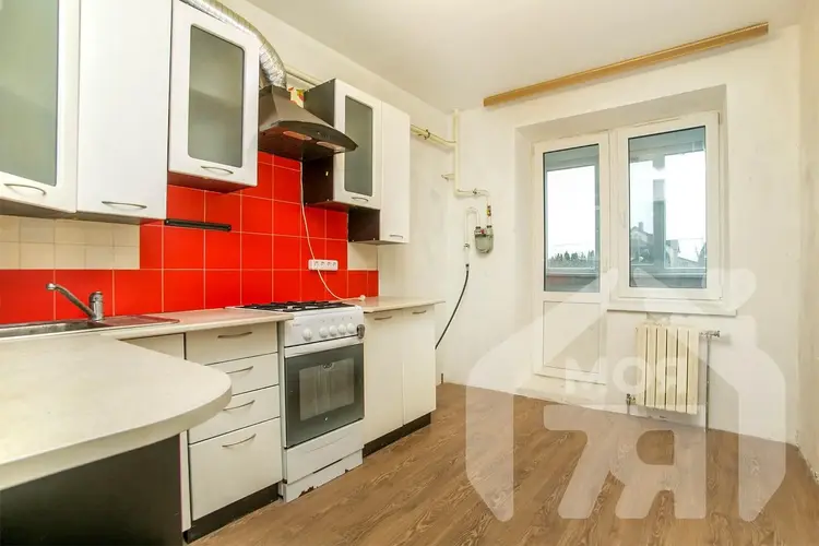 -На просторной кухне, площадью почти 9 кв.м. уже установлен функциональный кухонный гарнитур. Площадь позволяет разместить здесь всю необходимую технику и мебель.