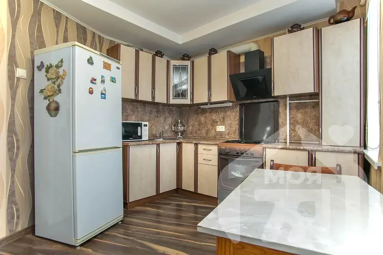 - В квартире выполнен косметический ремонт, на полу уложен ламинат, потолки выровнены, санузел облицован плиткой.. Установлена кухонная мебель, что позволяет сразу пользоваться кухней без дополнительных вложений. Окна оснащены деревянными стеклопакетами, входная дверь металлическая.