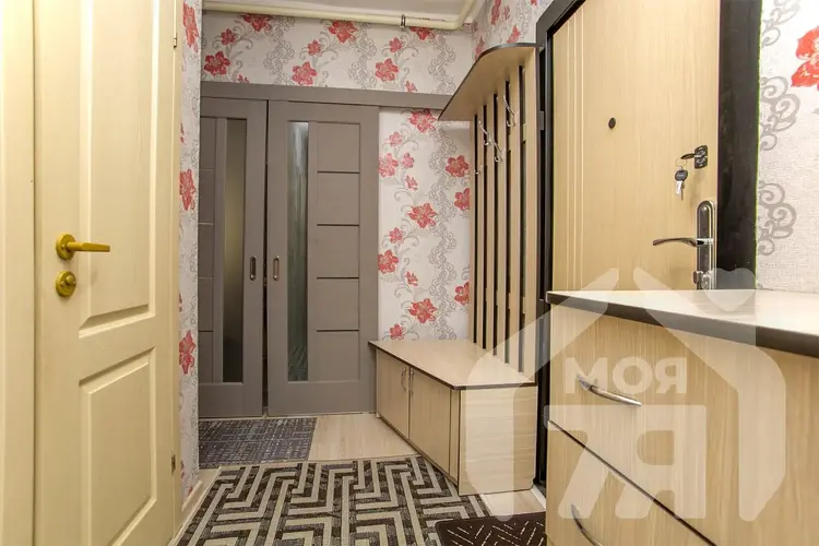 - В квартире хорошо организовано пространство для хранения вещей: установлен большой встроенный шкаф в коридоре.