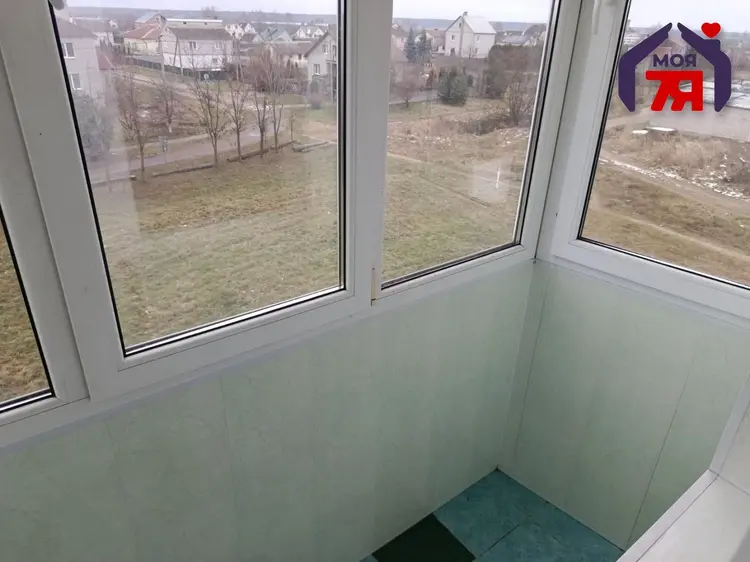- Лоджия застеклена, что даёт дополнительное место для хранения или отдыха.
