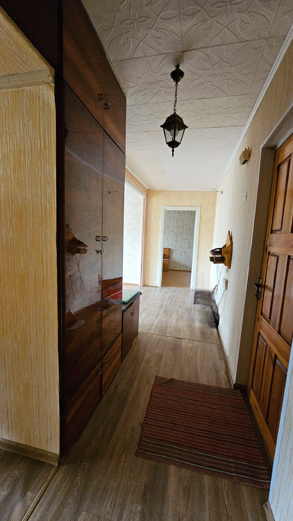 Квартира уютная, теплая, в простом жилом состоянии без особого ремонта, Окна ПВХ (кроме окна в спальне), алюминиевая раздвижная рама на лоджии. Полы дощатые крашеные. В ванной комнате достойный ремонт, плитка, сантехника в хорошем рабочем состоянии.