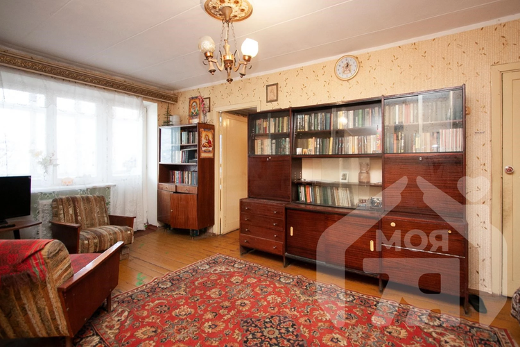 - Расположена на удобном 3 этаже 4-этажного дома. Общая площадь — 44,5 м², жилая — 28,6 м², кухня — 6,3 м². Санузел совмещённый, есть балкон.