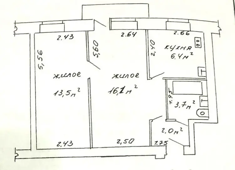 • Две светлые комнаты + кухня 6,4 м2 с балконом из зала.