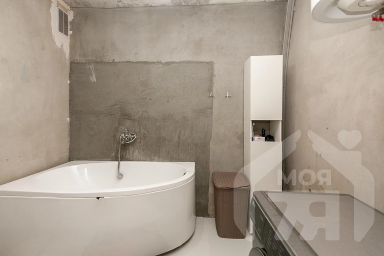 -Просторный санузел с угловой ванной и теплым полом обеспечивает удобство и комфорт.