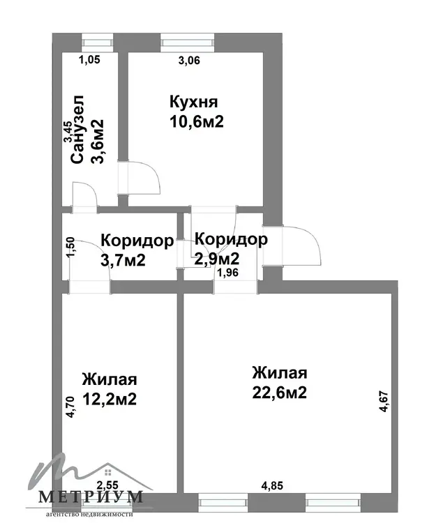 · Идеальная планировка: Удачная изолированная планировка с комнатами 12,2 м2 и 22,6 м2 (общая 55,6 м2) обеспечит комфорт каждому.