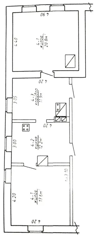 В квартире 3 рабочие печки (в т.ч. – 1 плита). Для поддержания хорошей температуры в квартире нет необходимости топить все три. Состояние квартиры – простое, жилое. Высота потолков 3 метра. Можно использовать квартиру как 3-х комнатную (см. техпаспорт, планировку). Планировка позволяет оборудовать санузел.