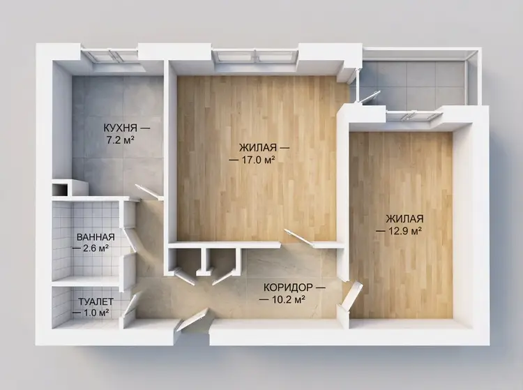 - Окна выходят на 3 стороны, что гарантирует максимум естественного света в течение дня.