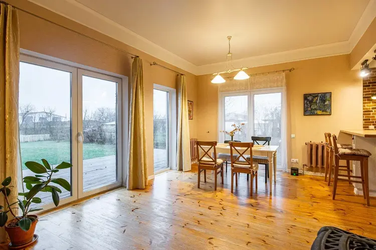 С гостиной прямой выход на террасу и во внутренний двор, где можно устраивать барбекю, играть в активные игры, просто отдыхать в шезлонге, и делать всё, что душе угодно.