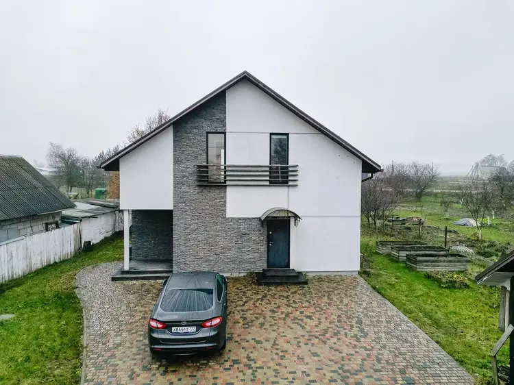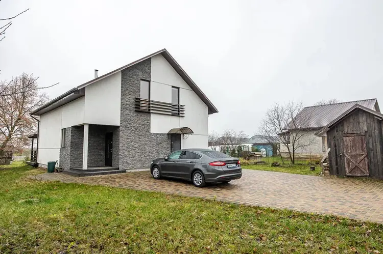 Перед домом уложена тротуарная плитка, есть место для стоянки авто.