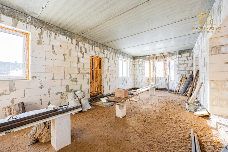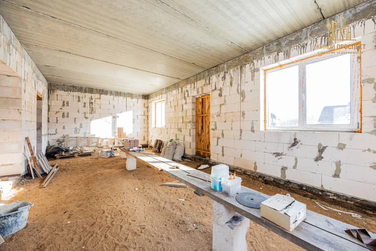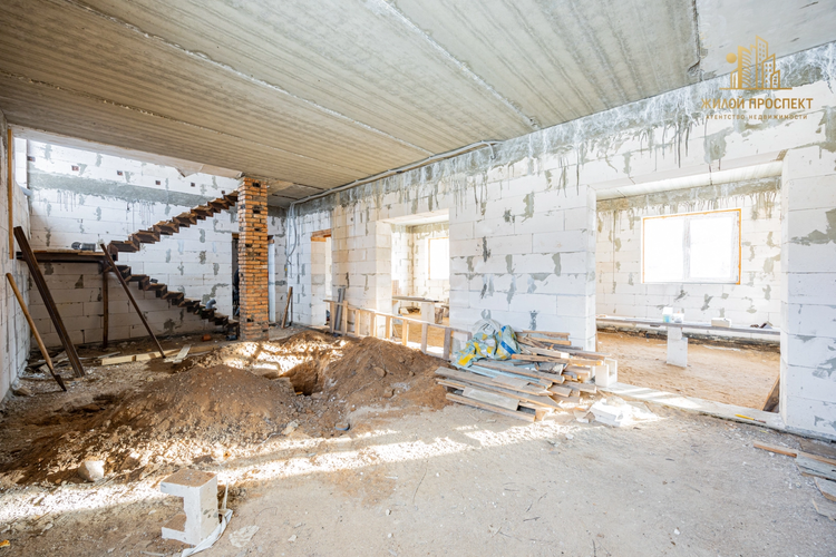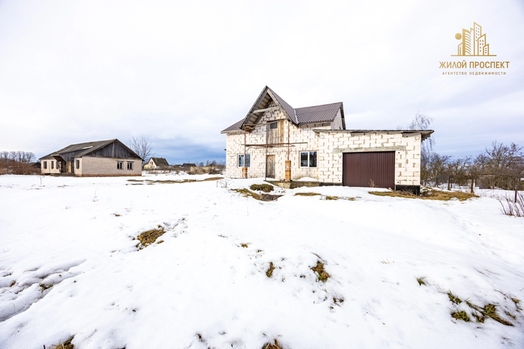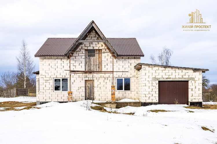 Продается просторное строение с гаражом в 20,0 км от МКАД по Могилевскому шоссе! Уютное загородное расположение всего в 20 километрах от столицы открывает отличные перспективы для создания родового поместья или загородной резиденции. Основное строение (незавершенное строительство) имеет: Общую площадь 288 кв. м., что дает огромный простор для реализации ваших дизайнерских идей. ПЛАНИРОВКА: Проектом предусмотрено 5 изолированных комнат, что идеально подходит для большой семьи или приема гостей. · Жилая площадь составляет 150 кв. м. — это просторные спальни и гостиные без тесноты. · Просторная кухня площадью 18 кв. м. станет сердцем дома, где будет комфортно собираться всем домочадцам. Ключевые особенности конструкции: · Фундамент: Комбинированный свайно-ленточный. Монолитная лента высотой 1.2 метра опирается на железобетонные сваи диаметром 40 см. Глубина свай: промежуточные — 3 метра, угловые — 3.5 метра, шаг между сваями — 2 метра. Это гарантирует устойчивость на любых грунтах и исключает усадку. · Стены: Использованы качественные блоки плотностью D500 и D400. Толщина стен дома — 300 мм, что обеспечит отличное теплосбережение после утепления. · Перекрытия: Железобетонные плиты — надежность и отличная звукоизоляция между этажами. · Цоколь: Арматура выпущена над уровнем земли на 60 см — это готовое решение для возведения высокого цокольного этажа или создания монолитного пояса. Дополнительные преимущества: Просторный гараж на 36.5 кв. м. Это не просто место для машины, а полноценное помещение для мастерской, хранения инвентаря или техники. (С ямой). Прекрасная локация: Могилевское направление славится хорошей транспортной доступностью и развитой инфраструктурой. Рассмотрим различные формы расчёта. Звоните — с удовольствием покажу квартиру и отвечу на все вопросы. ООО «Жилой проспект» УНП: 193890816 Договор № 53 /1 от 02.03.2026 Лицензия Министерства юстиции Республики Беларусь № 02240/518 от 15.08.2025 г.