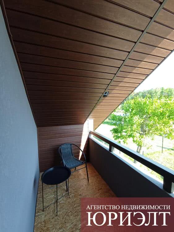 Общая площадь 75 м2. Планировка: на первом этаже находятся кухня-гостиная 17,5 м2, холл и санузел, в мансарде – просторная жилая комната 30 м2 с лоджией.