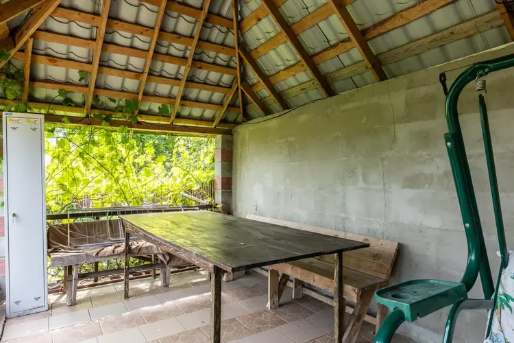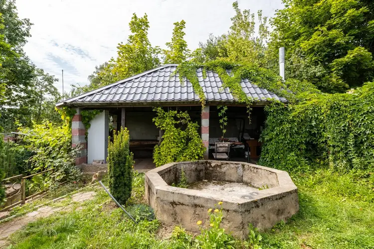 - На участке большая беседка, камин, бетонная конструкция под фонтан.