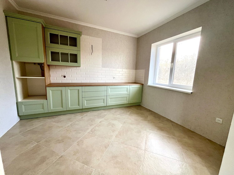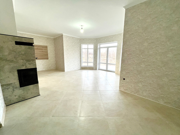 Одноэтажный дом общей площадью 90 кв.м. Внутридомовое пространство включает в себя гостиную с оборудованным камином и выходом на террасу (35 кв.м.), кухню (11 кв.м.), две жилые комнаты( 13 м2 и 10 м2), санузел и топочную. Фундамент – монолит. Стены – газосиликатный блок (40 см)+ утеплитель + финишная отделка. Крыша – гибкая черепица (утеплена). Установлены энергосберегающие стеклопакеты. Великолепный вид из окон дома на реку Котра и лес! Для отопления предусмотрен электрический котел. Канализация - местная, водоснабжение – скважина (48м), электричество 380 Вт. Все коммуникации разведены по дому. Напольное покрытие – плитка, ламинат, материал стен – декоративная штукатурка, потолки выровнены, окрашены. Установлен кухонный гарнитур из массива дерева фирмы Geos Ideal. Санузел облицован плиткой.