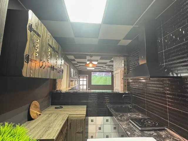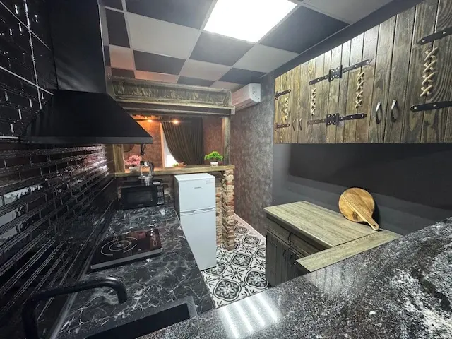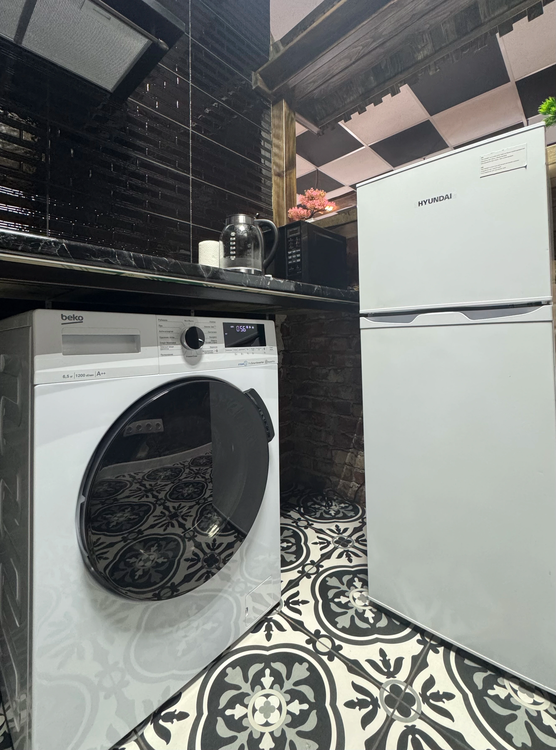 - Кухня, оборудованная холодильником, индукционной плитой, микроволновой печью, электрочайником.