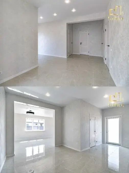 Полы: кухня, С/У, коридор, топочная,кухня-гостиная – плитка. Жилые комнаты - ламинат.