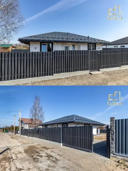 Участок 10,9 соток, огорожен металлопрофилем и металлоштакетником, откатные ворота с электроприводом, ровный правильной формы.