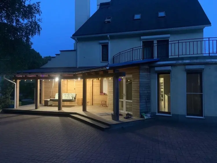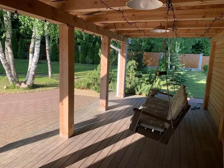 Беседка , барбекю зона, освещение по участку, разводка воды по участку для полива, с территории два выхода (есть калитка в лес), теплица, парковка перед домом на 3 машины, асфальтированный подъезд с трассы, ландшафтный дизайн, взрослые хвойные дервья по периметру, участок не просматривается соседями, полна приватность:)